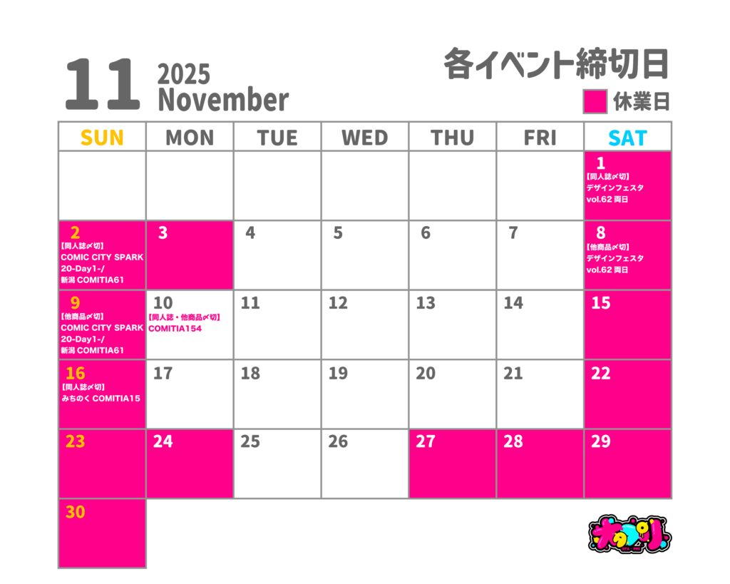締切日カレンダー