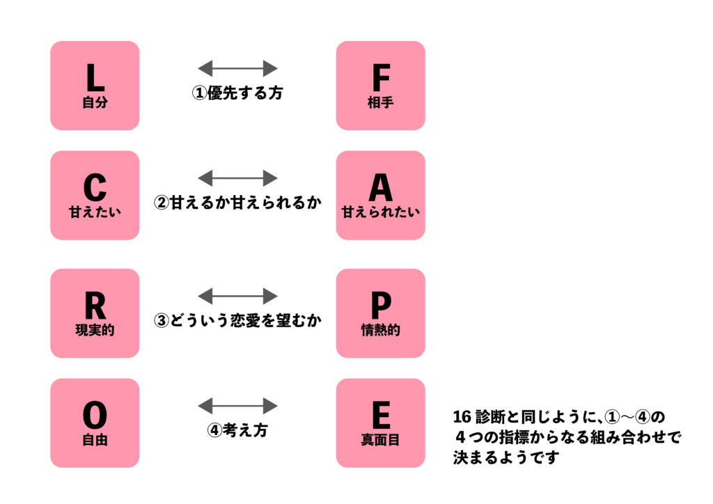 ちなみにラブタイプ診断は上記の指標からの組み合わせで決まります