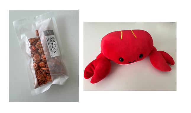 まるごとかにせんべい(中国産?)とカニのぬいぐるみ…