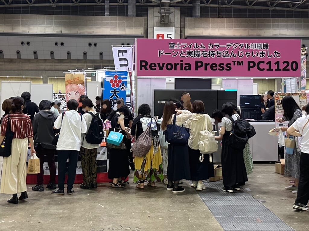 今回のCOMIC CITY VEGAでは、富士フイルム様が【Revoria】という印刷機の実機を会場に持ち込まれていた事もあって、実際にそこで印刷サービスをされたり、普段ユーザー様が目にする事のない印刷機に、興味津々の方も多くいらっしゃいました。